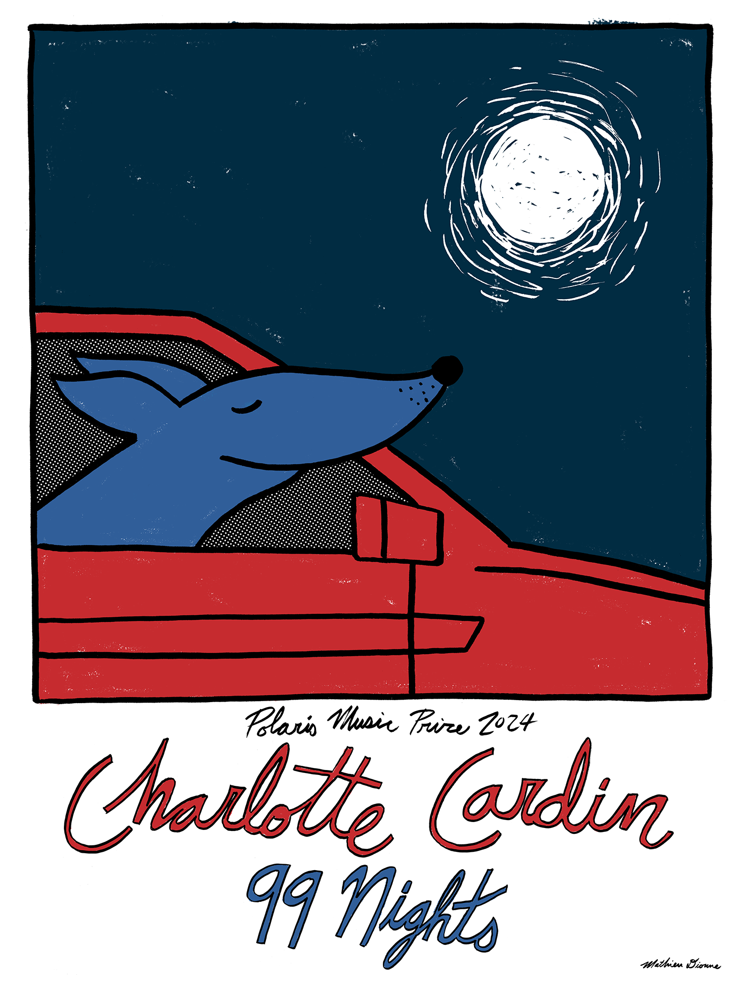 Affiche créée dans le cadre de la nomination de l’album «99 Nights» de Charlotte Cardin au prix Polaris 2024.