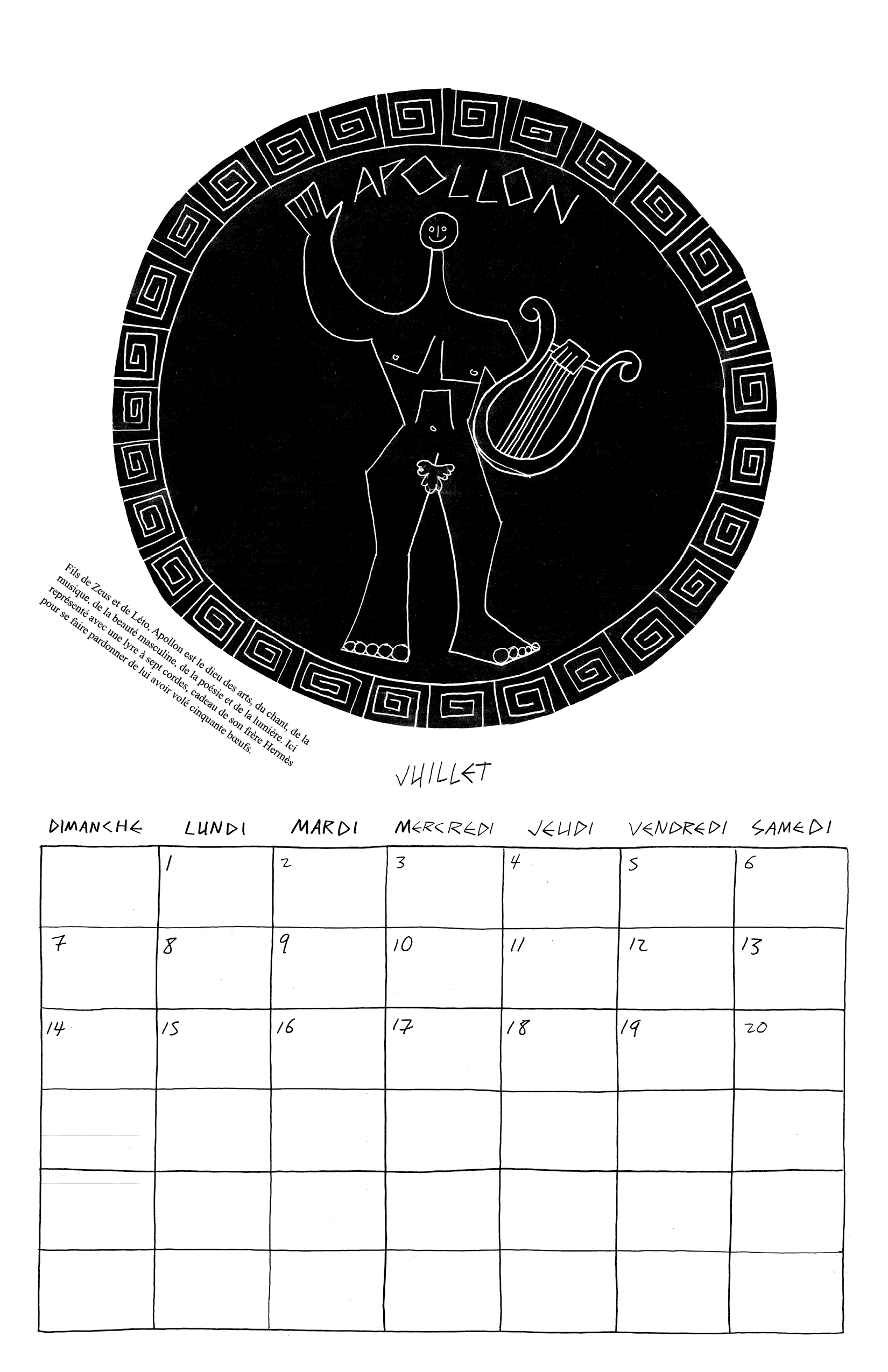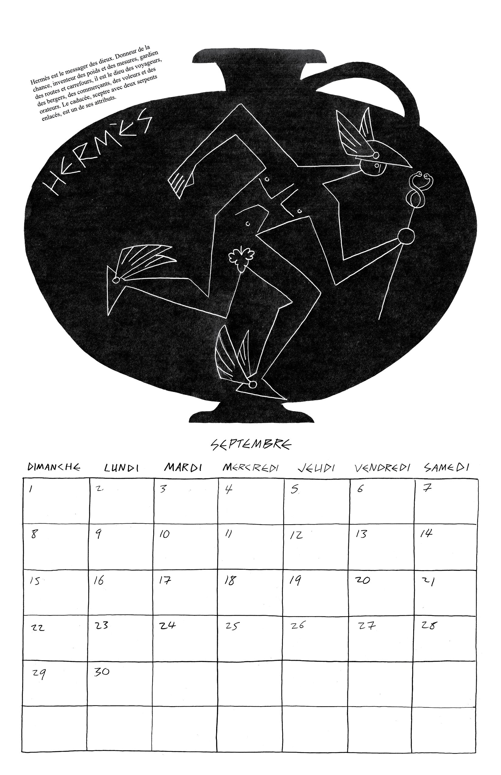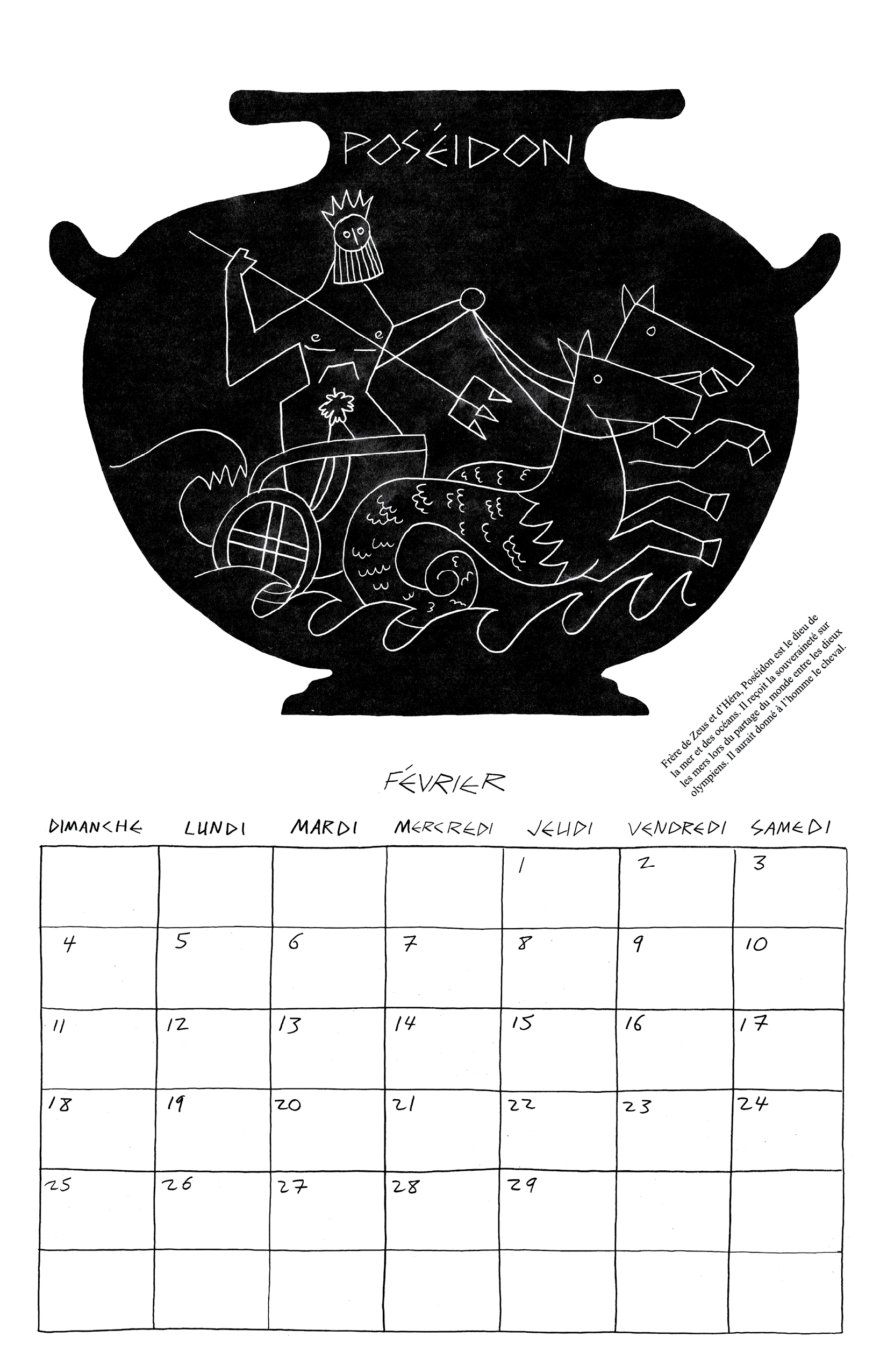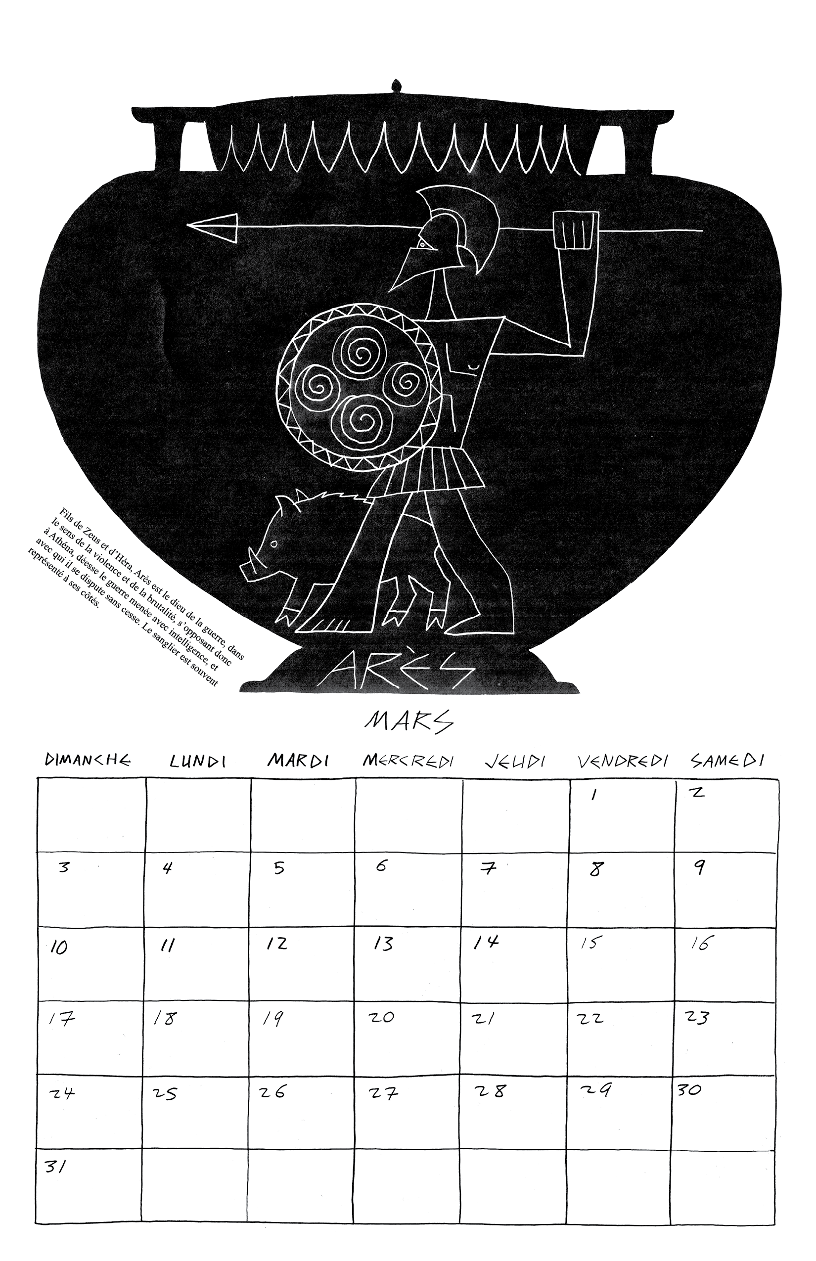 Inspiré par ma lecture de l’Iliade et l’Odyssée de Homère, j’ai fait mon calendrier de 2024 autour des 12 dieux de l’Olympe.
