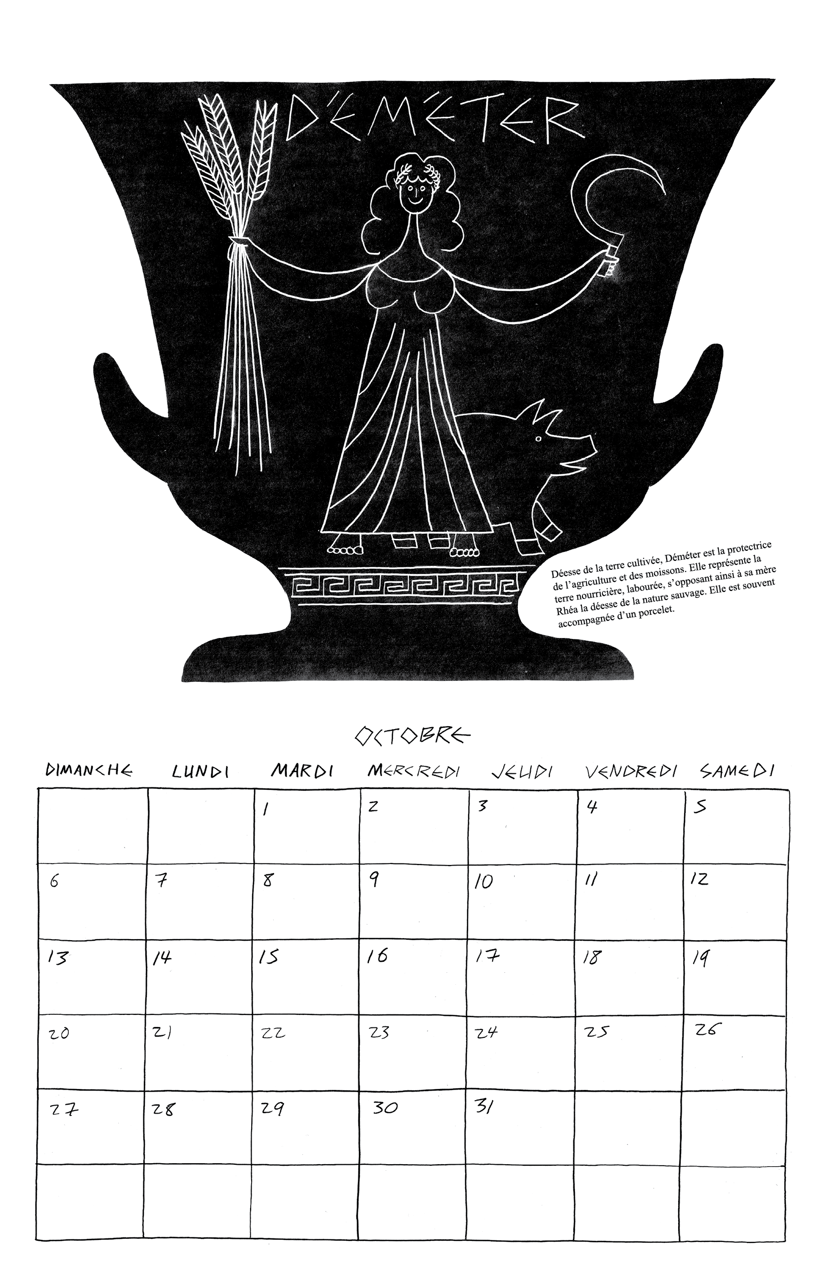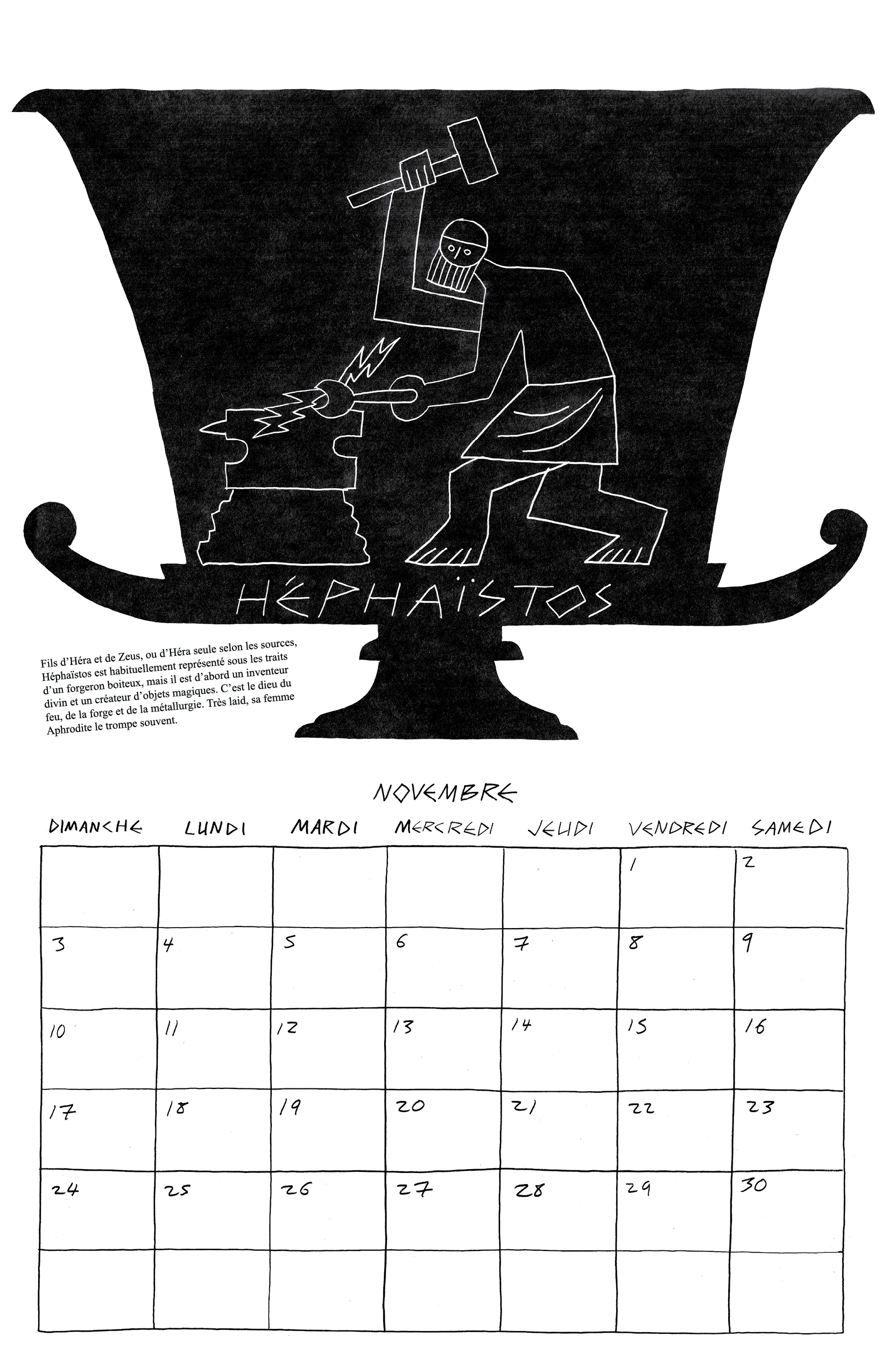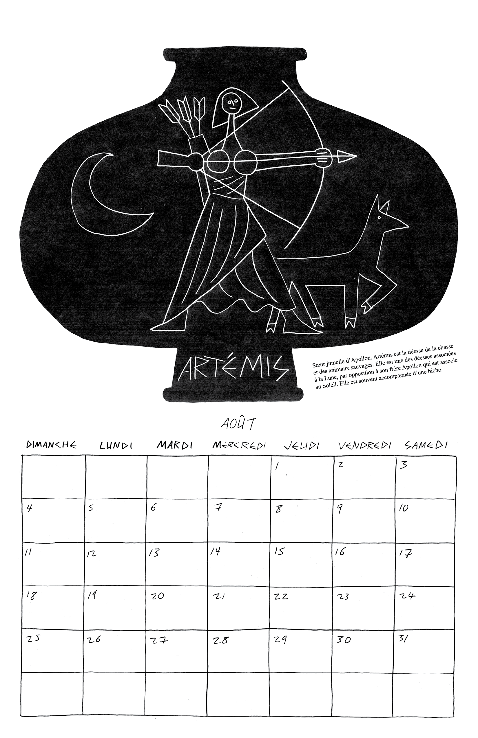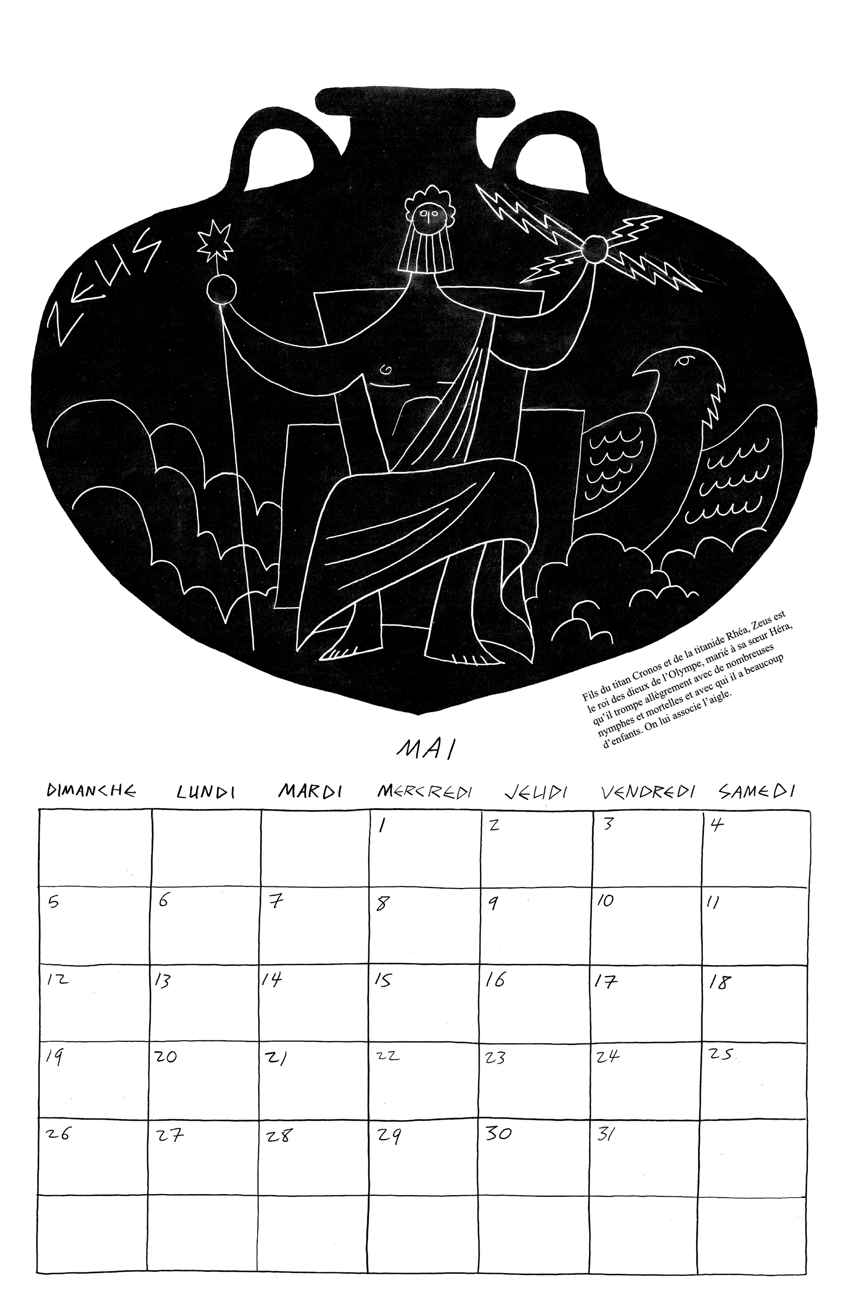 Inspiré par ma lecture de l’Iliade et l’Odyssée de Homère, j’ai fait mon calendrier de 2024 autour des 12 dieux de l’Olympe.